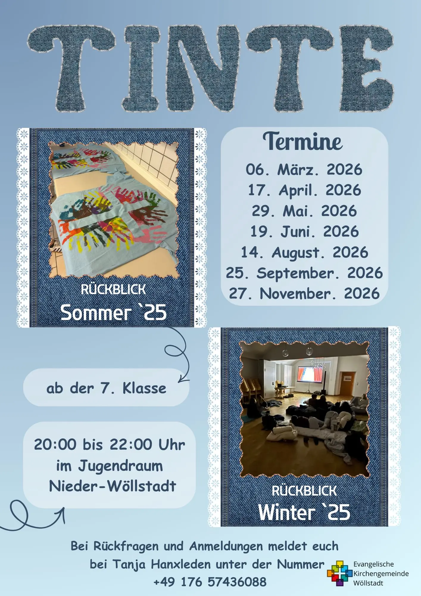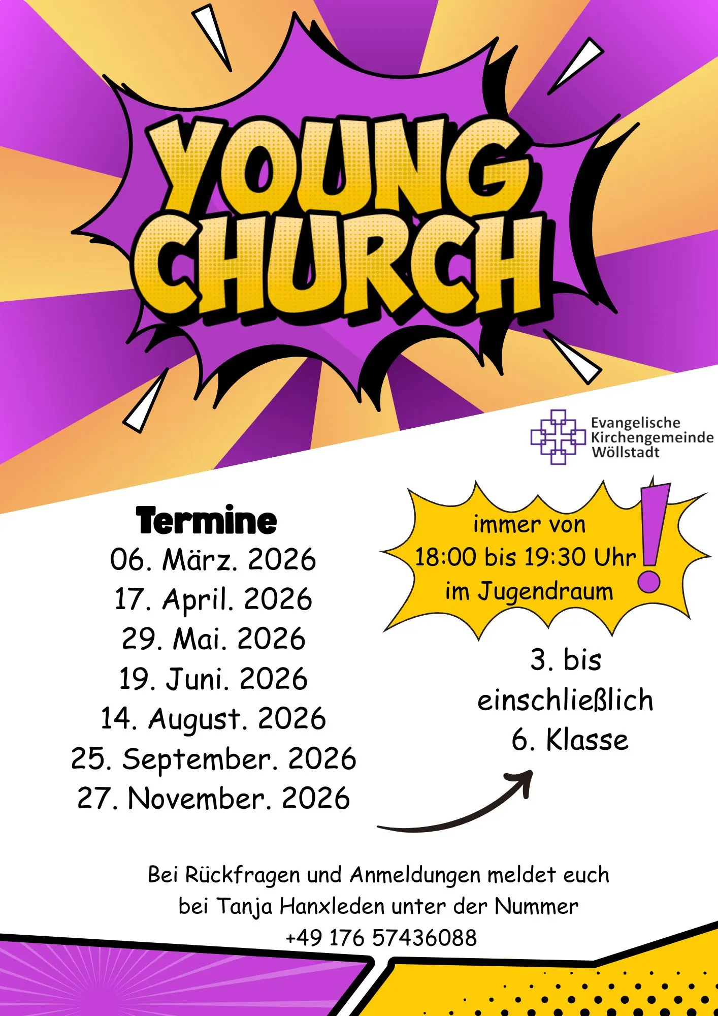 Anmelden kannst du dich bis Ende Mai. Wir starten mit dem neuen Konfi-Jahr kurz nach den Sommerferien. Alle genauen Termine, weitere Infos und auch das Datum für den Elternabend bekommst du demnächst per Post oder im Gemeindebüro.